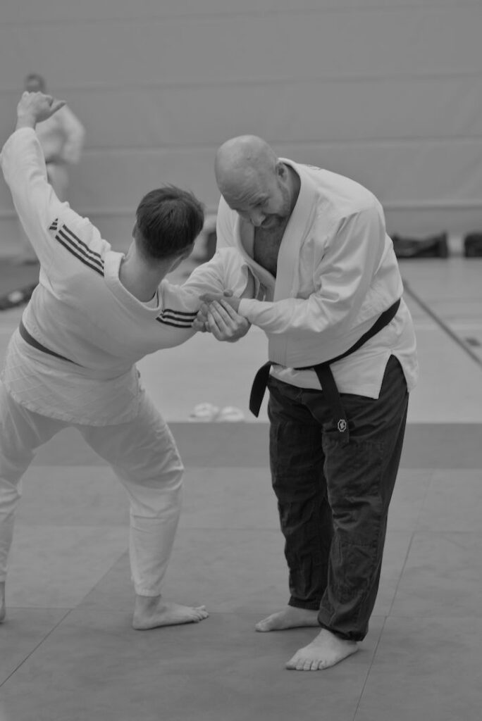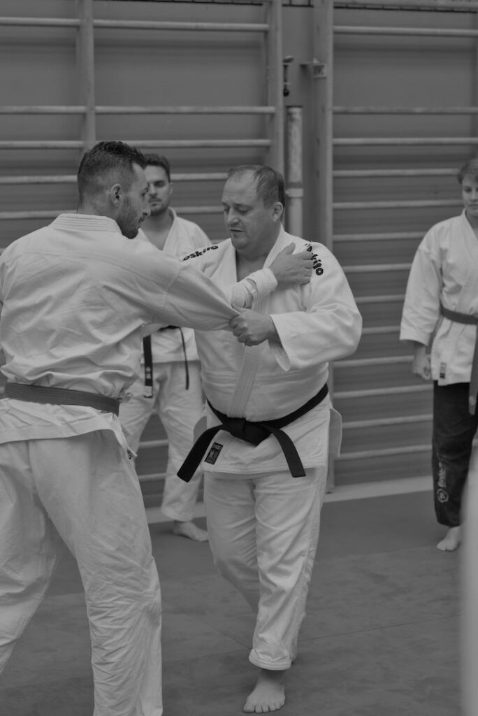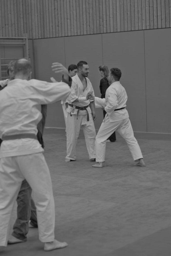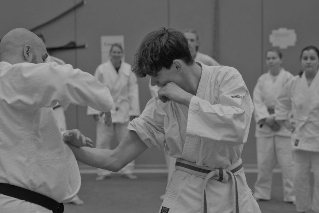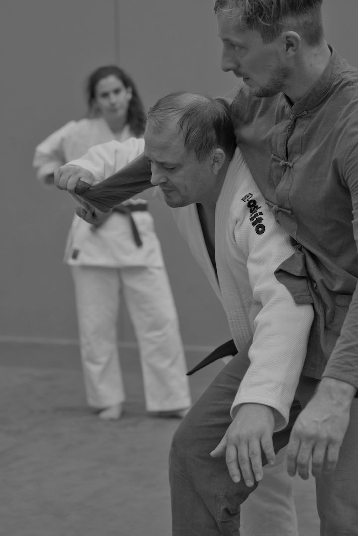 Fabian Ackle, 4. Dan, lehrte unterschiedliche Abwehrtechniken aus dem Ju-Jitsu. Auch Weiterführungstechniken, welche durch das Reagieren wurden zur Ausführung gebracht.