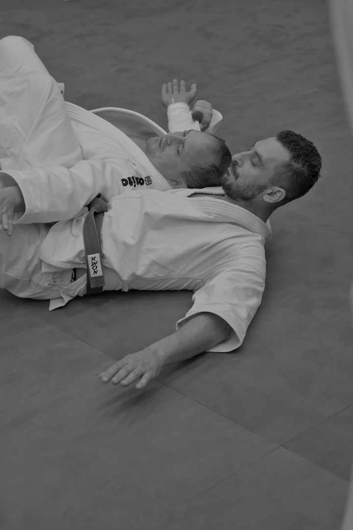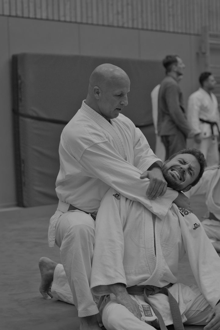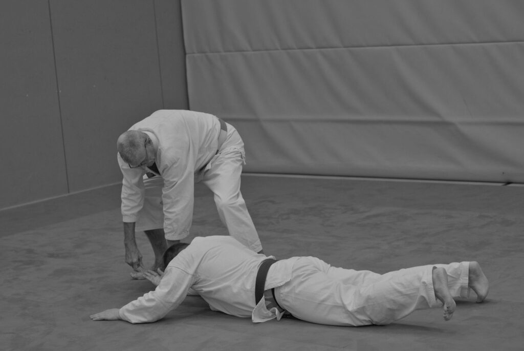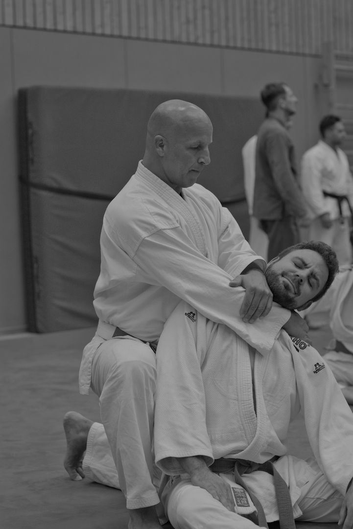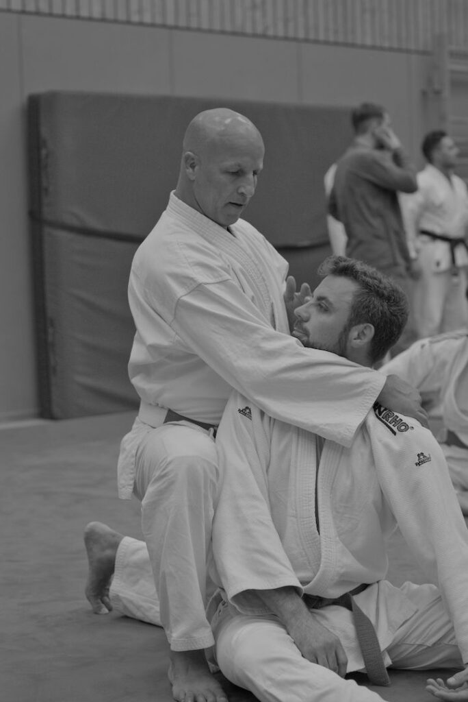 Jörg Eisele, 6. Dan zeigte verschiedene Bodentechniken aus dem Ju-Jitsu. Besonderen Wert wurde dabei auf Shime-Waza und die korrekte Ausführung derer gelegt.
