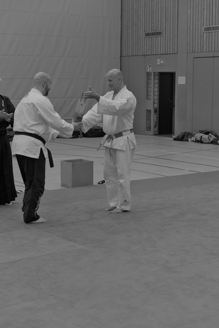 Robert Schenk, 6. Dan, brachte den Teilnehmern Aikido Techniken aus dem SV-Bereich näher. Die Teilnehmer konnten ihre Kenntnisse im Abwehren von Schlagangriffen erweitern.